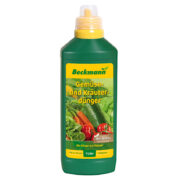 Düngungsbeginn 2-3 Wochen nach der Pflanzung, Düngungsende im Freiland im Spätsommer/Frühherbst. 100 ml Gemüse- und Kräuterdünger auf 10 Liter Gießwasser entsprechen der empfohlenen 1%igen Konzentration. Starkzehrer wie Tomaten und wüchsige Kübelpflanzen 1 x wöchentlich, Schwachzehrer wie Kräuter und weniger wüchsige Stauden alle 2-4 Wochen düngen.