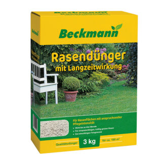 25-35 g/m² pro Gabe auf trockene Rasenflächen streuen. Ideal ist die Ausbringung einige Tage nach dem Mähen auf die trockene Fläche. Anschließend wässern.